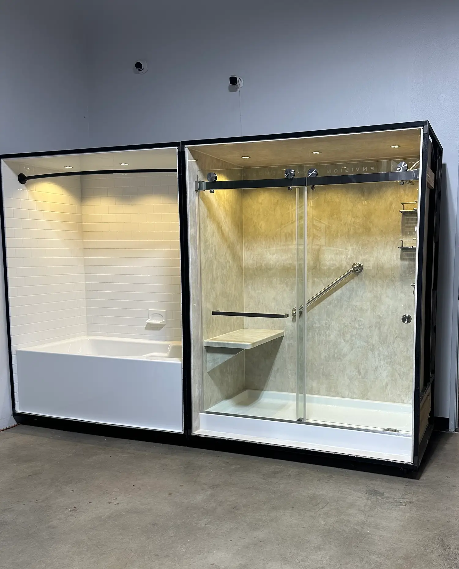 When you stop by, you'll see full shower, tub, and walk-in tub displays. Touch our material samples, check out different fixtures and finishes, and see how everything comes together.